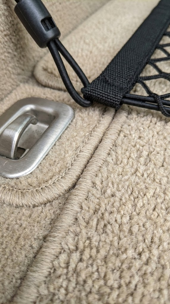 Ковролин в багажнике выполняет сразу несколько задач. Во-первых, это защита основания: плотный ворс и более «мясистая» подложка лучше сопротивляются продавливанию коробками и острыми кромками груза. Во-вторых, это акустика: когда покрытие работает как демпфер, мелкие предметы меньше гремят, а груз меньше скользит. В-третьих, обслуживание: плотный ворс проще пылесосить, он реже забивается песком и меньше расползается по краям. И именно здесь проявляется логика оснащения: крючки и сетка имеют смысл только тогда, когда они взаимодействуют с устойчивой, износостойкой отделкой, а не с тонким «ковриком для вида».